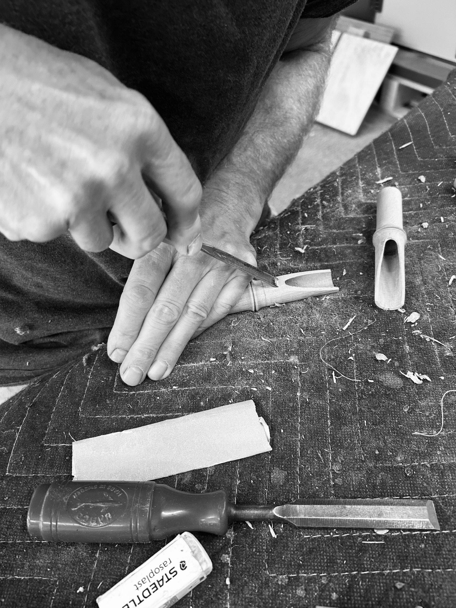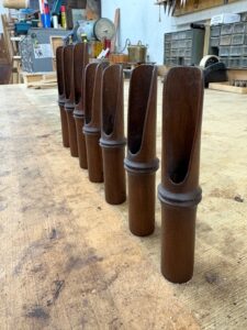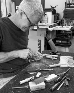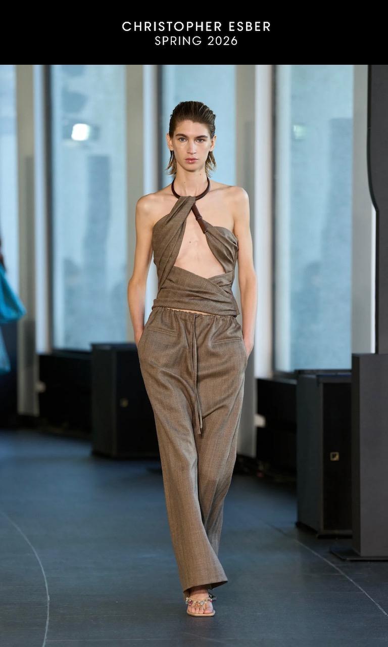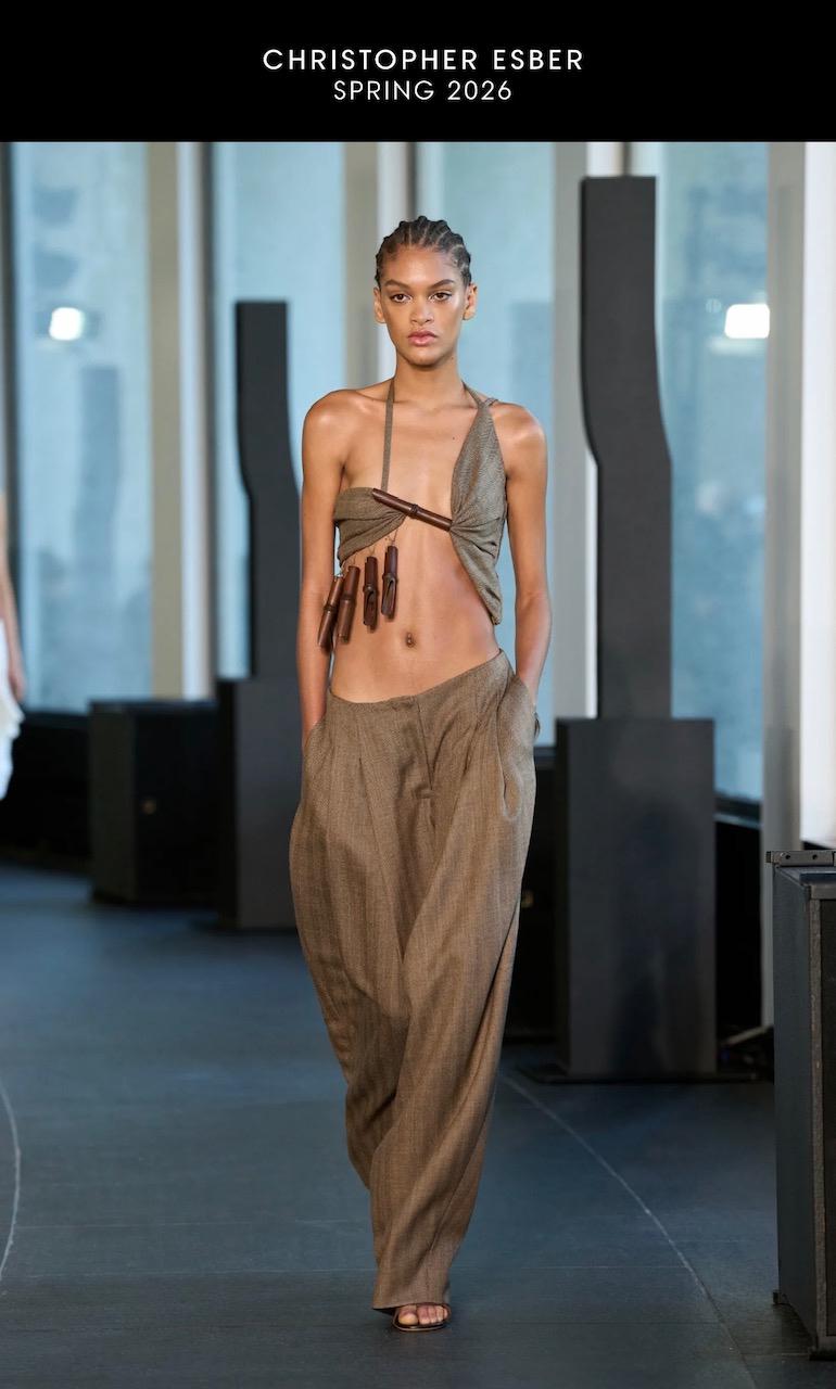 Decretive timber pieces handcrafted by Andrew Pinnock were recently featured as part of Christopher Esber’s collection at the Paris Fashion Week. Carved in the sculptural form of bamboo chimes and made from Queensland maple, the timber elements were worn by models as striking fashion embellishments.